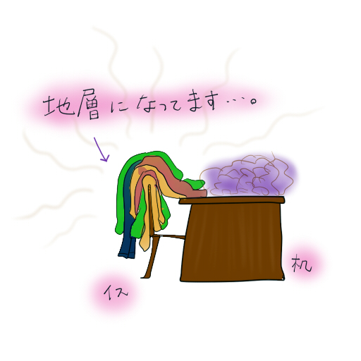そういうのは今まで椅子に重ねすぎて地層になってたので、